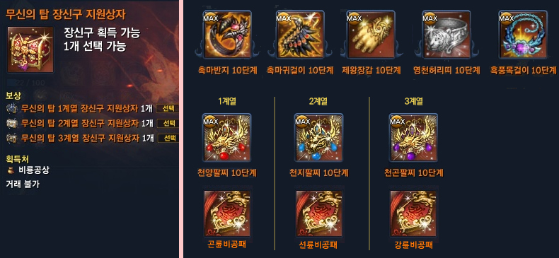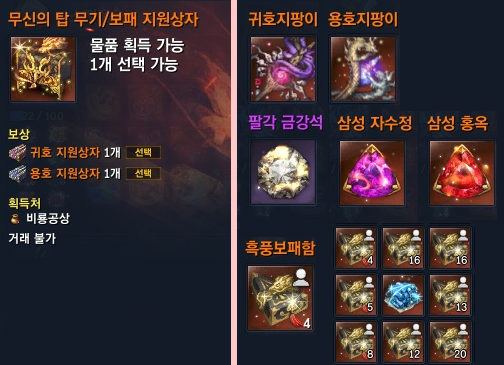 ◆무기보패 지원상자 / 장신구 지원상자는 '계정' 당 한번만 가능합니다.◆