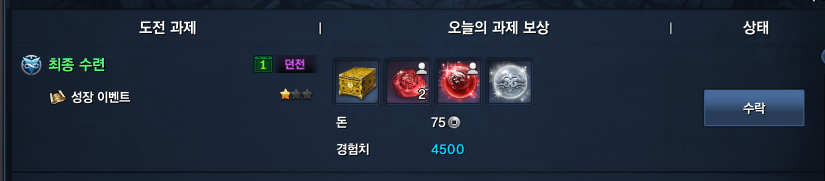 일일도전 첫번째 고정 퀘스트인 최종수련은 무신의 탑 7층의 정하도를 잡는 퀘스트입니다.