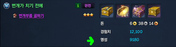 하위 영웅던전<1인던전<상위 영웅던전<전설던전 순으로 명성을 많이 줍니다.