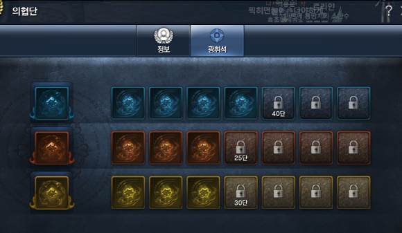 많은 던전을 돌면 돌수록, 그리고 부 캐릭터들도 많이 키우면 키울 수록 의협단은 빨리 오릅니다.