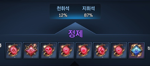 그리고 각 광휘석의 정제점수 합산으로 각 등급 정제 확률이 정해집니다.