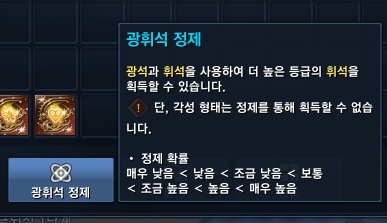 정제는 광석과 휘석을 사용해서 더 높은 등급의 휘석을 획득 할 수 있는 방법입니다.