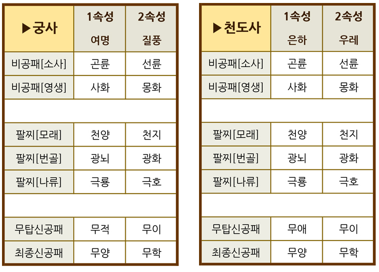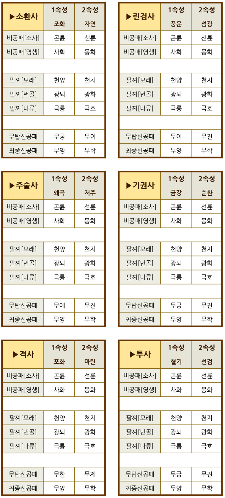 그러니 신공패를 교환 하실때 본인의 속성을 잘 보시고 맞는 신공패를 교환하셔서 합치셔야합니다.