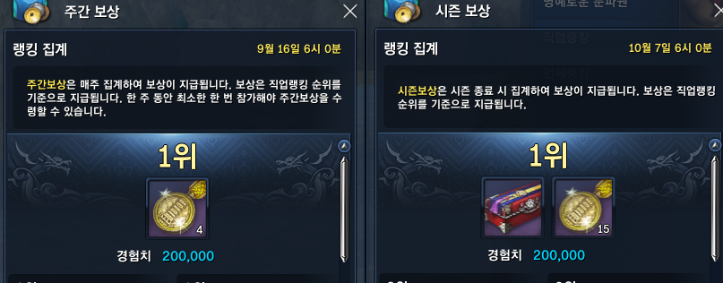 이 시즌은 수요일 정기점검일을 기준으로 매주 한번이라도 했다면 주간보상을 주고