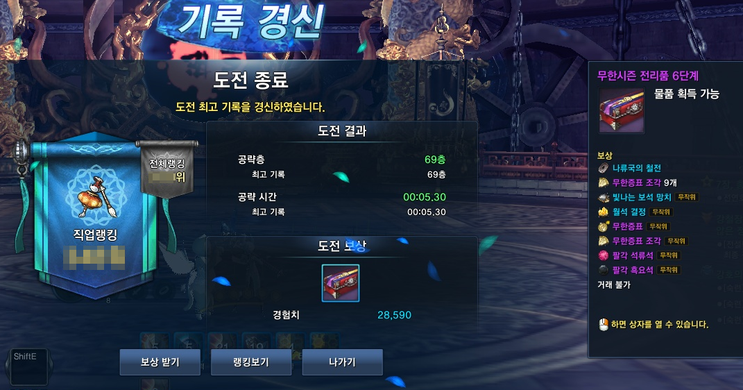 20.10.07 업데이트 : 신기수련장 랭킹전이 사라졌습니다ㅠㅠ